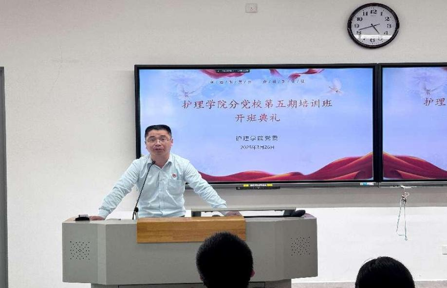 為深入學習貫徹習近平新時代中國特色社會主義思想,切實加強入黨積極分子的教育培養(yǎng)。2025年3月27日,護理學院分黨校第五期入黨積極分子培訓班開班典禮在護理學院第五階梯教室隆重舉行。黨委領(lǐng)導班子、黨支部書記、團總支指導老師與60名入黨積極分子出席開班典禮。