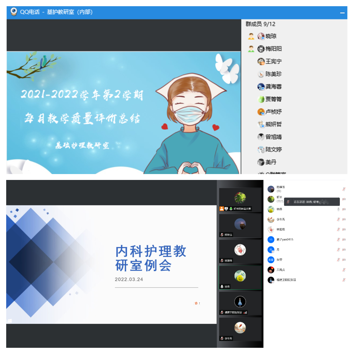 各個(gè)教研室開展“線上集體備課”,針對(duì)線上教學(xué)的特點(diǎn),分析教學(xué)內(nèi)容、探討教學(xué)方法、分享教學(xué)經(jīng)驗(yàn),保證教學(xué)同質(zhì)化。