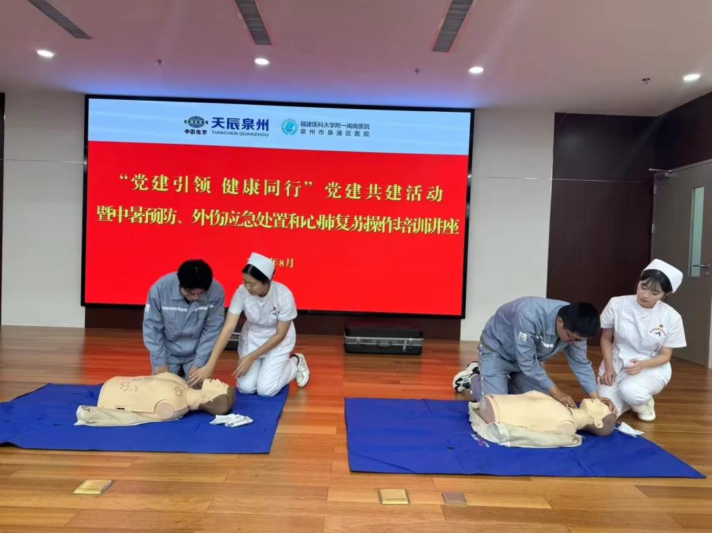 在中化學(xué)天辰(泉州)新材料有限公司的職工也參與了我們的活動(dòng),我們?yōu)槠溟_(kāi)展了醫(yī)學(xué)知識(shí)宣教與CPR的演示與教學(xué)活動(dòng)。通過(guò)這些活動(dòng),職工們不僅學(xué)到了寶貴的急救知識(shí),也增強(qiáng)了應(yīng)對(duì)緊急情況的能力。
