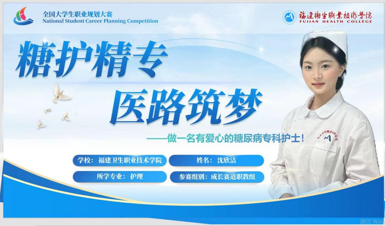 賽事聚焦職業(yè)目標(biāo)與專業(yè)發(fā)展、社會(huì)需求與個(gè)人成長(zhǎng),通過生涯規(guī)劃書評(píng)審、現(xiàn)場(chǎng)展示、答辯等環(huán)節(jié),全面考察選手的綜合能力。獲獎(jiǎng)同學(xué)結(jié)合護(hù)理專業(yè)特色,立足“健康中國(guó)”戰(zhàn)略背景,從臨床實(shí)踐、基層服務(wù)、科研創(chuàng)新等維度,展現(xiàn)了新時(shí)代護(hù)理人的使命擔(dān)當(dāng)與職業(yè)理想。