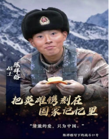 陳祥榕(2001.12-2020.6),中國人民解放軍某機(jī)步營站士。2020年6月在邊境沖突中,突入重圍,營救戰(zhàn)友,英勇戰(zhàn)斗,奮力反擊,毫不畏懼,直至壯烈犧牲。英雄雖已離去,精神永駐邊關(guān)?!扒宄旱膼郏粸橹袊边@是18歲陳祥榕寫下的戰(zhàn)斗口號。