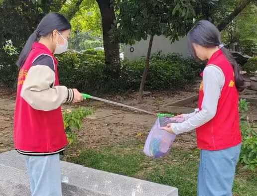 在校園里可以看到一道亮麗的風(fēng)景線——那便是志愿者的紅馬甲