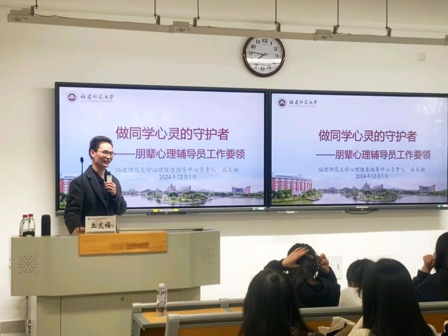 為提升我院師生的心理健康水平,全面增強(qiáng)大學(xué)生群體對心理危機(jī)的認(rèn)識,并有效提升朋輩間相互支持與心理干預(yù)的實(shí)際能力,護(hù)理學(xué)院學(xué)生第三黨支部聯(lián)合護(hù)心苑于2024121日下午舉辦了一場精彩紛呈的心理健康講座。此次講座特別邀請了福建師范大學(xué)心理健康指導(dǎo)中心主任丘文福老師老師主講,重點(diǎn)圍繞心理危機(jī)的概念、朋輩心理幫扶的技巧、心護(hù)未來三個(gè)方面展開,希望能通過這場講座更好地引導(dǎo)學(xué)生健康成長。