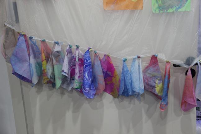 水拓絲巾:顏料在水面暈染出奇幻色彩,絲巾輕覆的剎那,似把春天戴在了身上!