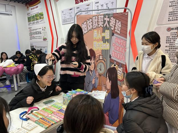 孔雀東南飛:“孔雀東南飛!孔雀東南飛…”指令聲此起彼伏,反應(yīng)慢半拍的“迷糊選手”逗得全場(chǎng)大笑,最終50+位同學(xué)贏得禮品!