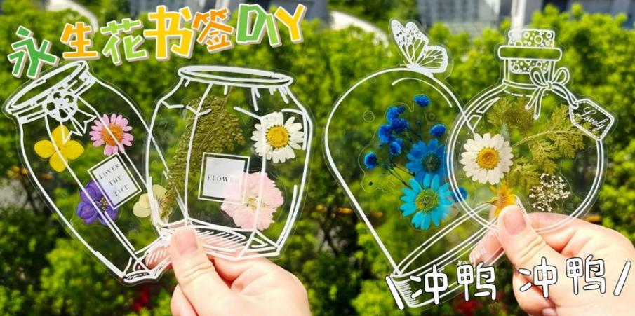 將永生花封入透明書簽,壓花、裝飾,親手創(chuàng)作。讓浪漫花香伴你閱讀,定格春日詩意。