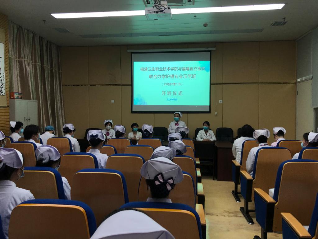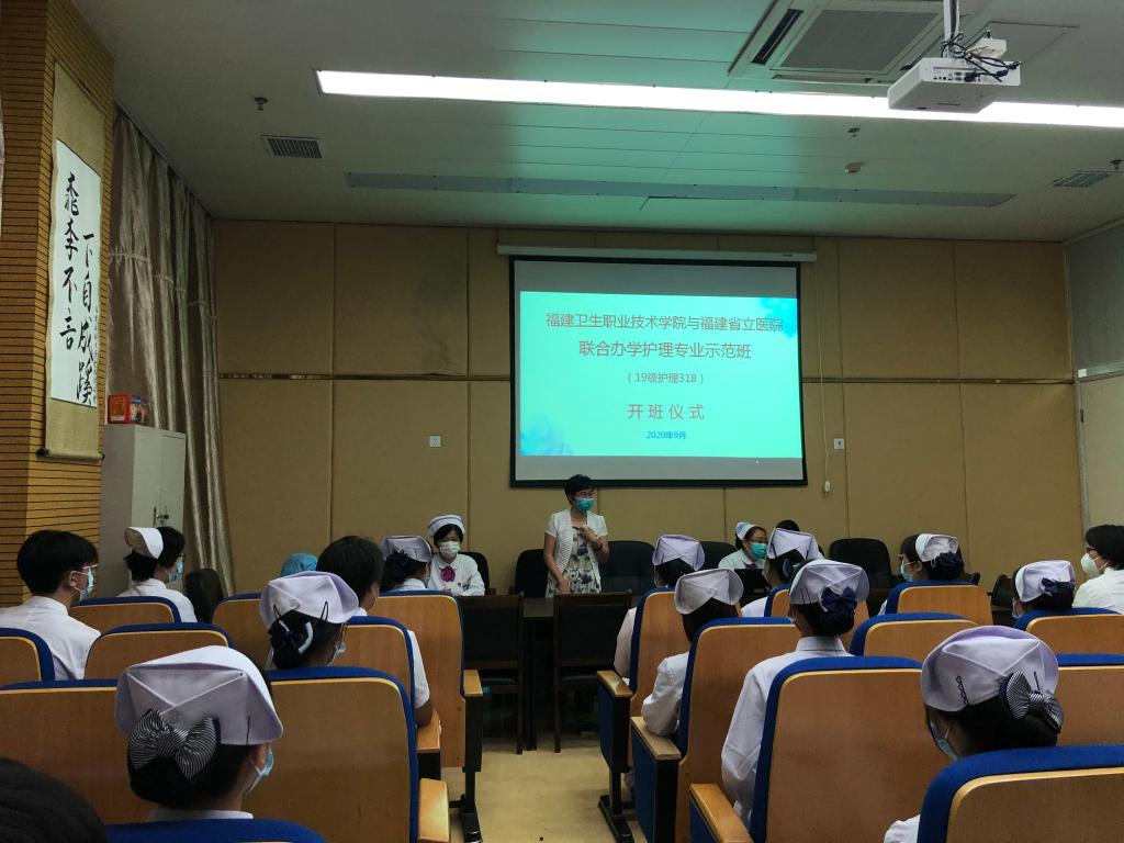 97日,我院與省立醫(yī)院聯合開辦的2019級護理系專業(yè)省立醫(yī)院校企合作班在省立醫(yī)院正式開班,省立醫(yī)院護理部副主任金爽老師、班主任穆艷老師、各教研室主任、帶老師代表以及我院護理系黨總支書記謝濤等參加了開班儀式。