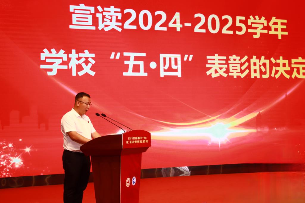 大會宣讀了《關于2024-2025學年學校“五·四”表彰決定》和《關于2023-2024學年先進集體和先進個人的表彰決定》,并舉行頒獎儀式,在場領導為獲獎個人和集體代表頒獎。