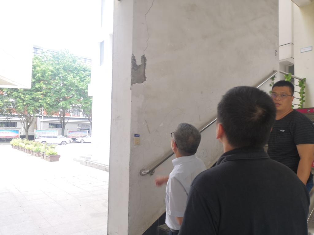 陳貞健副院長實地查看了校內(nèi)樓宇疑似結(jié)構(gòu)安全隱患點。他指出,安全工作是一切工作的基礎(chǔ),要認真落實上級關(guān)于房屋結(jié)構(gòu)安全隱患排查整治工作的部署,全面排查,精準聚焦,強力整治。要堅持分類施策,經(jīng)復(fù)查確認屬于非結(jié)構(gòu)安全的隱患點,要安排修繕隊及時修復(fù);經(jīng)復(fù)查仍無法判斷是否屬于結(jié)構(gòu)安全隱患的,應(yīng)聘請有資質(zhì)的第三方機構(gòu)進行檢測鑒定;經(jīng)復(fù)查確認為結(jié)構(gòu)安全隱患的,應(yīng)立即封閉停用,并報告建筑所在地政府部門,根據(jù)政府部門的要求進一步采取整改措施,務(wù)必整改到位,堅決防止安全事故發(fā)生。