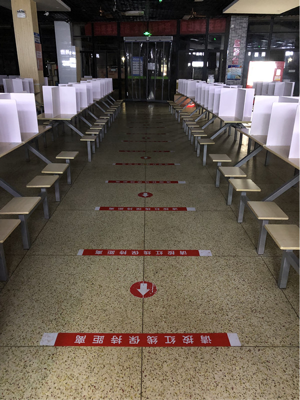面對(duì)當(dāng)前疫情多點(diǎn)散發(fā)的嚴(yán)峻態(tài)勢(shì),后勤管理處、招標(biāo)采購(gòu)中心黨支部有效強(qiáng)化校園疫情防控,落實(shí)所有進(jìn)出食堂的人員佩戴口罩、保持1米安全距離,定期消殺食堂環(huán)境等防控要求,做實(shí)、做深、做細(xì)食堂防疫舉措。3月12日,后勤管理處、招標(biāo)采購(gòu)中心黨支部快速響應(yīng)疫情防控要求,組織人員利用周末時(shí)間加急在校內(nèi)三個(gè)食堂350多張餐桌上安裝了PVC隔板,將每張餐桌分割成四個(gè)獨(dú)立“小空間”,阻斷堂食期間飛沫傳播,為師生安全、健康用餐增添一道安全屏障,為疫情防控做出積極的努力。