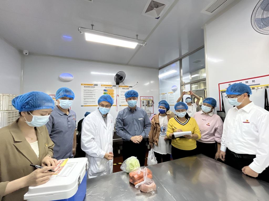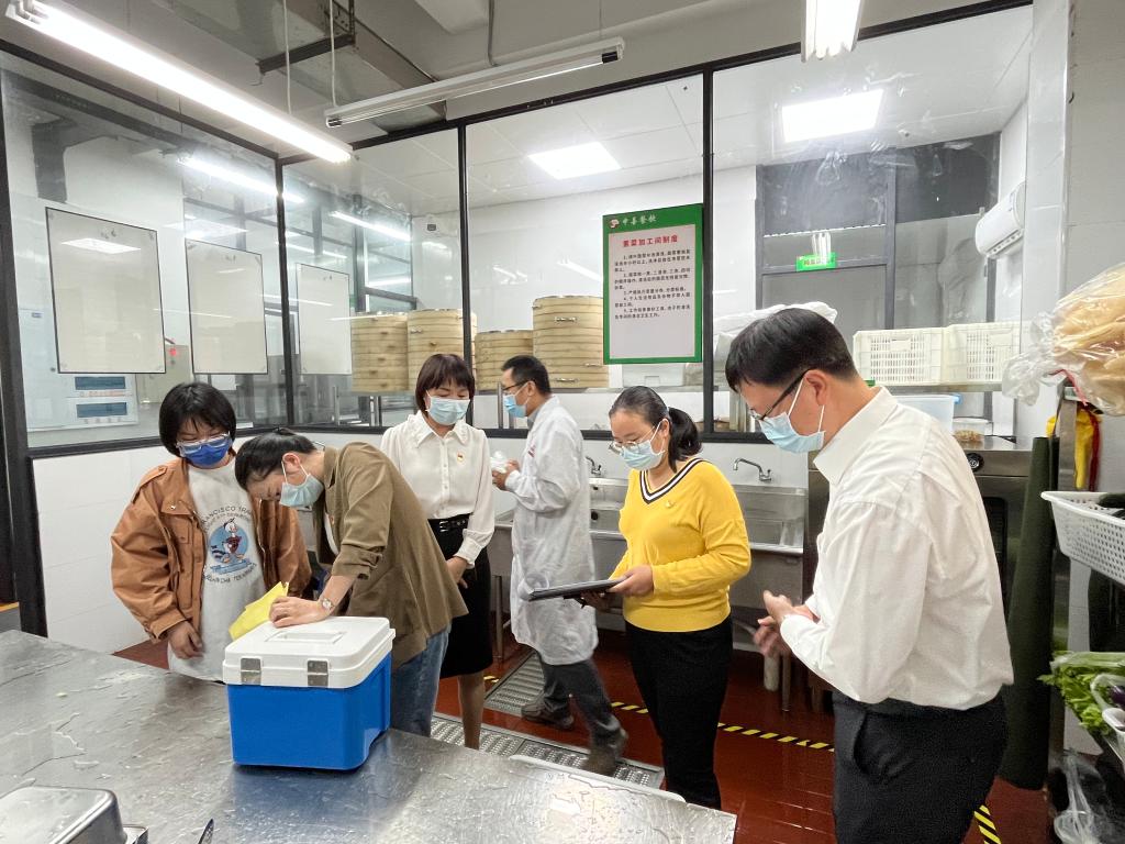 為加強(qiáng)學(xué)校食堂食品安全管理,筑牢師生糧食安全意識(shí),持續(xù)推進(jìn)“五聯(lián)七進(jìn)”工作,結(jié)合世界糧食日和全國糧食安全宣傳周活動(dòng)。2022年10月21日,院直機(jī)關(guān)黨總支后勤管理處、招標(biāo)采購中心黨支部與健康管理系“雙帶頭人”教師黨支部聯(lián)合開展食堂食品安全專項(xiàng)檢測,學(xué)校黨委副書記李美華現(xiàn)場指導(dǎo)工作。