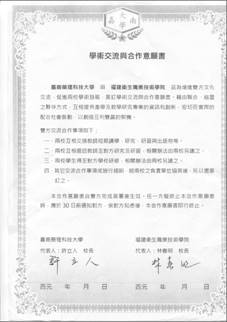 學(xué)院與嘉南藥理大學(xué)合作意向書