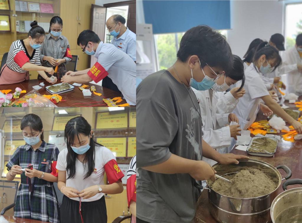 黨員教師帶領(lǐng)入黨積極分子與團(tuán)學(xué)干部共同制作防疫香囊,試制中藥預(yù)防湯劑,為后續(xù)防疫工作的開展做好充分準(zhǔn)備。