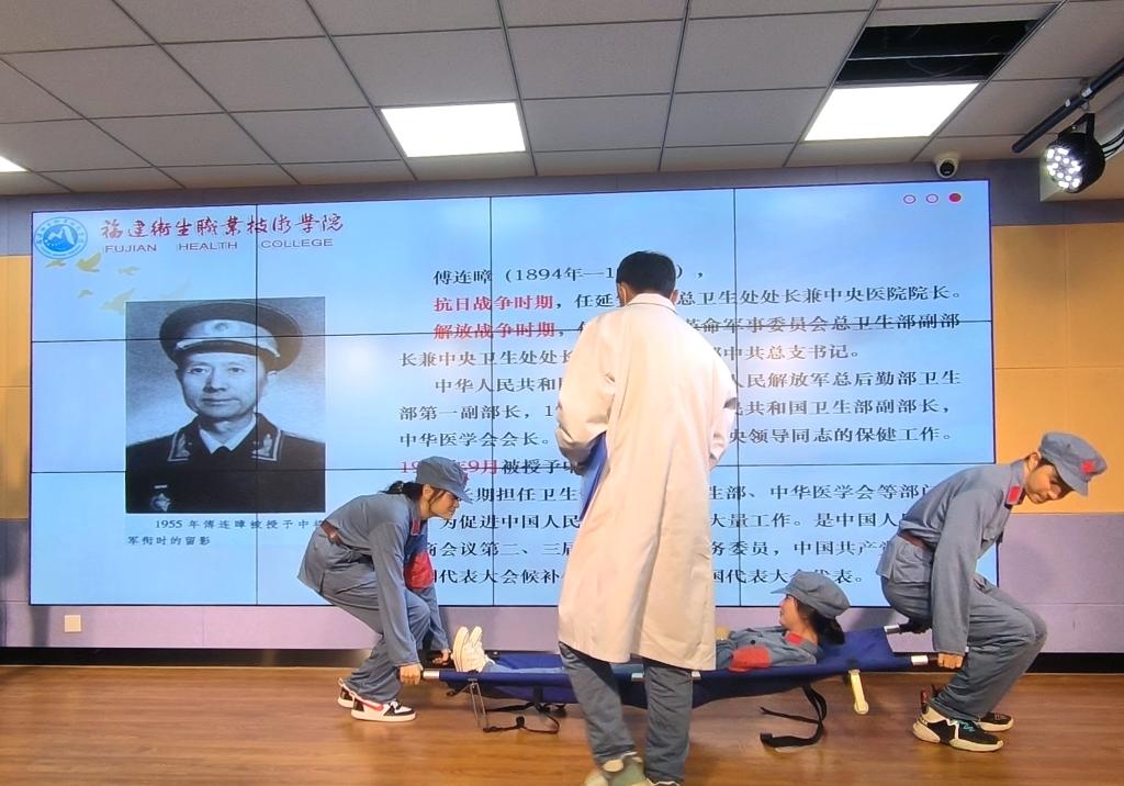 《傅連暲從教會醫(yī)生到革命者的轉(zhuǎn)變》《沖破封鎖,保障藥械供應(yīng)》《華東醫(yī)務(wù)工作者的旗幟》《月亮洞醫(yī)院》《德醫(yī)雙馨的醫(yī)務(wù)工作者》《閩衛(wèi)的軍營生活——我的人生起點》《“生命天使”林巧稚》《吳孟超:披肝瀝膽,醫(yī)者仁心》等情景劇作品,分別講述了傅連暲、曹國煌、高胡、陳海峰、左英、陶平、林巧稚、吳孟超等紅色閩醫(yī)故事,以飽含年代感的場景、內(nèi)涵豐富的情節(jié)展示了革命戰(zhàn)爭年代、新中國成立前后到中國特色社會主義新時代的醫(yī)療戰(zhàn)線上英雄人物的光輝事跡以及一代代福建紅醫(yī)人傳承“政治堅定、救死扶傷、埋頭骨干、技術(shù)優(yōu)良”為主要內(nèi)容的紅醫(yī)精神。同學(xué)們生動逼真的表演感染了在場所有人,把師生們帶回到激情燃燒的歲月,大家紛紛表示,通過親身演繹紅醫(yī)故事,更加深刻地體會到紅醫(yī)前輩的不易,更加強烈地感受到醫(yī)學(xué)生的初心與使命,也更加明白了作為當(dāng)代醫(yī)學(xué)生要賡續(xù)紅醫(yī)精神,樹立崇高信念,練就過硬本領(lǐng),無愧新時代閩衛(wèi)人的責(zé)任與擔(dān)當(dāng)。