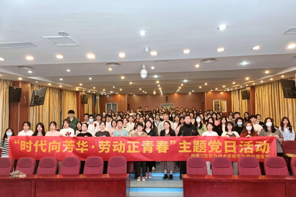 為學(xué)習(xí)貫徹黨的二十大報告提出的“在全社會弘揚勞動精神、奮斗精神、奉獻(xiàn)精神、創(chuàng)造精神、勤儉節(jié)約精神,培育時代新風(fēng)新貌”,4月27日,護(hù)理學(xué)院學(xué)生第四黨支部在實訓(xùn)樓報告廳開展“時代向芳華 勞動正青春”主題黨日活動,護(hù)理學(xué)院學(xué)生第四黨支部全體師生黨員、120名入黨積極分子參加本次活動。