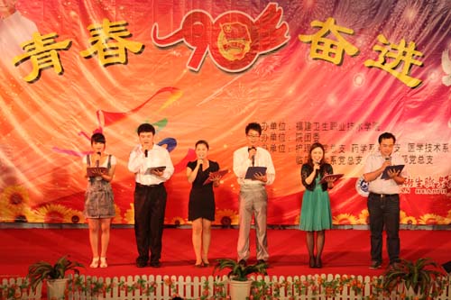 在魏立娜副院長(zhǎng)的致辭后,晚會(huì)在激昂的樂隊(duì)演奏中拉開帷幕,兩個(gè)半小時(shí)的晚會(huì)節(jié)目豐富多彩,有感人肺腑的配樂朗誦、激蕩人心的街舞、趣味橫生的小品、青春洋溢的歌曲串燒。院團(tuán)委選送的朗誦《我的青春 我的團(tuán)》通過回顧建團(tuán)90年來的精彩片段歌頌我們的青春、我們的團(tuán);福建衛(wèi)生科普志愿者藝術(shù)團(tuán)選送的小組唱,青春洋溢的歌聲感染了整個(gè)會(huì)場(chǎng);跳繩社選送的《繩彩飛揚(yáng)》,以精巧的技藝展示了花樣跳繩運(yùn)動(dòng)的魅力;街舞《Help》以新奇的手法將醫(yī)務(wù)人員的職業(yè)融入了舞蹈中,給人以耳目一新的感覺;具有濃郁民族風(fēng)的《雨竹林》和中華武術(shù)相融合,展現(xiàn)了博大精深的中華文化,將晚會(huì)推向了高潮。最后,歷屆十佳歌手的歌曲聯(lián)《We Are The World》、《相親相愛》更是唱出了對(duì)我們學(xué)院美好的期望和祝愿。