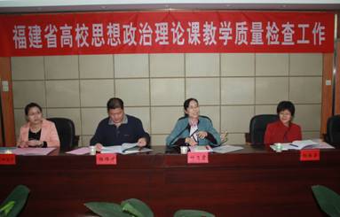 2012年11月22日下午,由福建農(nóng)林大學(xué)馬克思主義學(xué)院院長葉飛霞教授任組長,福建工程學(xué)院思政部主任楊偉才教授、福建師范大學(xué)馬克思主義學(xué)院院長助理楊林香副教授、省委教育工委宣傳部歐陽迪莎主任科員任組員的檢查組一行4人蒞臨我院,對我院思想政治理論課教學(xué)質(zhì)量進(jìn)行檢查指導(dǎo)。學(xué)院黨委陳雄副書記、廖偉堅副院長、黃開良副院長、魏立娜副院長,黨委工作部、教務(wù)處、學(xué)生工作處、人事處、科研處、財務(wù)處、團(tuán)委、各系部黨總支等相關(guān)職能部門負(fù)責(zé)人,思想政治理論課教研部黨政領(lǐng)導(dǎo)和全體思想政治理論課教師參加了匯報會和專家反饋會。會議由廖偉堅副院長主持。