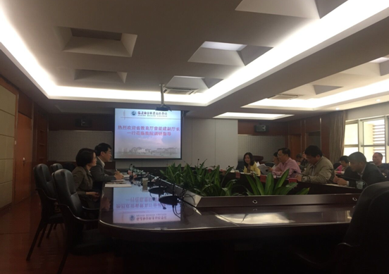 2017年11月1日,省教育廳曾能建副廳長(zhǎng)率領(lǐng)發(fā)展規(guī)劃處吳嚇鳳處長(zhǎng)、財(cái)務(wù)處戴穎處長(zhǎng)蒞臨我院調(diào)研,實(shí)地考察了學(xué)院實(shí)訓(xùn)教學(xué)樓等部分校園設(shè)施。院黨委書(shū)記曾武祈、院長(zhǎng)蘇友新、黨委副書(shū)記林建團(tuán)、副院長(zhǎng)黃開(kāi)良、紀(jì)委書(shū)記李美華和各職能處室、教學(xué)系部負(fù)責(zé)人參加了座談會(huì)。座談會(huì)由曾武祈書(shū)記主持。