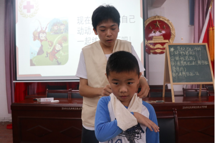 關(guān)愛(ài)鄉(xiāng)村兒童,共筑健康中國(guó)夢(mèng)。實(shí)踐團(tuán)教育關(guān)愛(ài)小分隊(duì)的志愿者們屏南縣棠口村開(kāi)展愛(ài)心支教活動(dòng),急救包扎、兒童防騙、傳統(tǒng)養(yǎng)生功夫、繪畫(huà)夢(mèng)想、衛(wèi)生常識(shí)、兒童營(yíng)養(yǎng)……志愿者與孩子們共同編織著一個(gè)七彩的夢(mèng)?!拔医K于知道受傷流血的時(shí)候怎么去止血,怎么減輕自己的疼痛感了。”傳統(tǒng)養(yǎng)生功法課上,“我也來(lái)一個(gè),我也來(lái)一個(gè)……”小朋友們紛紛要求露一手。夢(mèng)想繪畫(huà)課上,孩子們繪就醫(yī)生、老師、特種兵、超人宇航員等,從他們的繪畫(huà)中,志愿者們也感受著孩子的童真與偉大夢(mèng)想?!班?,我們要緊跟著爸爸媽媽,不能被壞人用糖果騙走?!眱和莉_課上,小朋友小丁這樣認(rèn)真地說(shuō)。孩子們用稚嫩的話語(yǔ)和志愿者們暢想未來(lái),在孩子們堅(jiān)定的眼神里我們相信我們心中的健康夢(mèng)、中國(guó)夢(mèng)一定會(huì)實(shí)現(xiàn)。