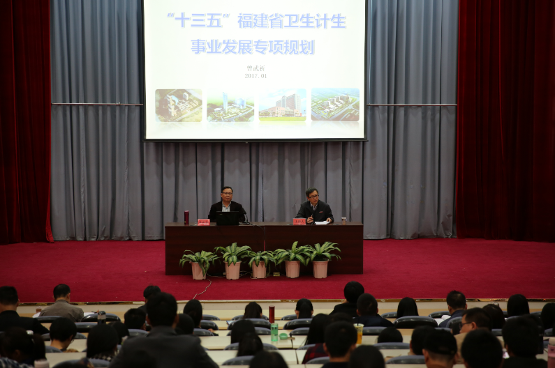 1月3日,學(xué)院黨委書記曾武祈同志在學(xué)院學(xué)術(shù)廳舉辦福建省“十三五”衛(wèi)生計(jì)生事業(yè)發(fā)展規(guī)劃專題講座,曾書記作為福建省“十三五”衛(wèi)生計(jì)生事業(yè)發(fā)展規(guī)劃起草組成員,對(duì)福建省“十三五”衛(wèi)生計(jì)生事業(yè)發(fā)展規(guī)劃進(jìn)行解讀。學(xué)院領(lǐng)導(dǎo)、全院教職工及部分學(xué)生代表參加,講座由廖偉堅(jiān)副院長(zhǎng)主持。