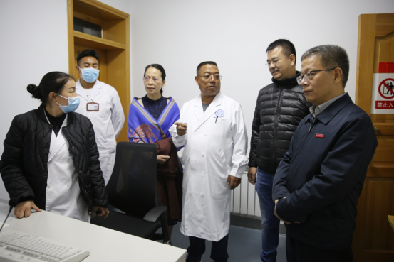 掛牌儀式后,醫(yī)院影像科主任、94屆“西藏班”班長尼頓帶領(lǐng)我院一行參觀科室。