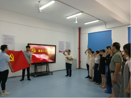 活動由黨總支負(fù)責(zé)人陳俊穎副書記主持,在莊嚴(yán)的國歌聲后,全體黨員一起觀看了為慶祝黨的98歲生日而傾情創(chuàng)作的獻(xiàn)禮短片《我宣誓——》,視頻展現(xiàn)一代又一代優(yōu)秀中國共產(chǎn)黨人不忘初心、牢記使命的政治本色和為人民為國家為民族赴湯蹈火、無私奉獻(xiàn)的高尚情操。