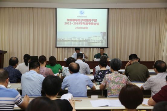 根據(jù)省教育廳黨組的統(tǒng)一部署和要求,7月3日上午,我院在行政樓六樓第三會議室召開院領(lǐng)導班子和領(lǐng)導干部2018-2019學年度考核會議。省教育廳黨組成員、副廳長、省委教育工委委員李迅,省教育廳學校安全工作處處長李建華,省教育廳人事處副調(diào)研員蘇震英,省教育科學研究所辦公室副主任陳建超對我院領(lǐng)導班子和領(lǐng)導干部進行考核。學院領(lǐng)導班子成員、中層干部、具有一定管理經(jīng)驗的高級職稱專技人員等共67位同志參加會議,會議由學院黨委書記曾武祈主持。