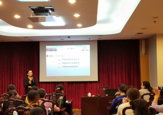 福建醫(yī)科大學(xué)附屬協(xié)和醫(yī)院護(hù)理部主任、福建省護(hù)理學(xué)會副理事長林雁娟做了《護(hù)理科研選題》的講座,她結(jié)合自己豐富的臨床科研經(jīng)驗,分享護(hù)理科研選題的定義及重要性和護(hù)理科研選題的來源。
