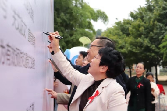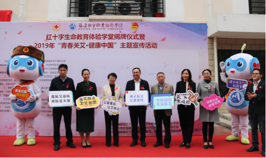 第32個(gè)世界艾滋病日即將來臨,福建衛(wèi)生職業(yè)技術(shù)學(xué)院于11月28日舉行紅十字生命教育體驗(yàn)學(xué)堂揭牌儀式暨2019年“青春關(guān)艾?健康中國”主題宣傳活動(dòng),省紅十字會(huì)黨組成員、專職副會(huì)長毛文航、校黨委書記曾武祈出席,省紅十字會(huì)事業(yè)發(fā)展與交往聯(lián)絡(luò)部部長徐義林、省造血干細(xì)胞捐獻(xiàn)者資料庫管理中心負(fù)責(zé)人敖志雄、校領(lǐng)導(dǎo)李美華、黃銘珊、鄭翠紅陪同,校團(tuán)委、各系黨總支負(fù)責(zé)人、校系兩級(jí)教工團(tuán)干、師生代表400余人參加活動(dòng)。