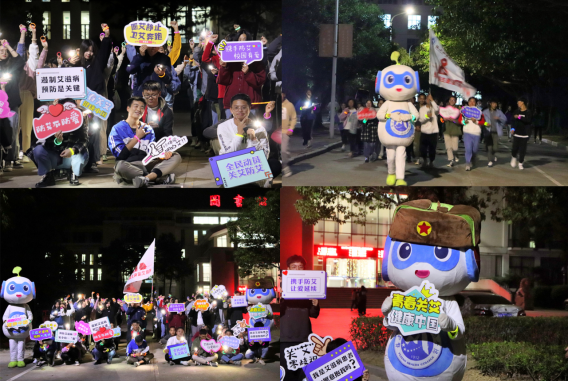 領(lǐng)導(dǎo)來賓為紅十字生命教育體驗(yàn)學(xué)堂揭牌,并為我校志愿者頒發(fā)紅十字救護(hù)證、佩戴紅絲帶。在活動(dòng)現(xiàn)場(chǎng),志愿者們表演防艾小短劇《放棄你、靠近你、抓緊你》,傳唱防艾公益歌曲《擁抱你》,朗誦 《給你,我的溫暖》。大家進(jìn)行防艾倡議簽名,聆聽福建省疾控中心吳守麗博士的防艾宣講,參加防艾知識(shí)競答和防艾宣傳小游戲。志愿者們還進(jìn)一步走訪宿舍、食堂、商鋪進(jìn)行防艾宣傳?,F(xiàn)場(chǎng)活動(dòng)在愿“艾”靜止,讓愛奔跑主題熒光夜跑中落下帷幕。