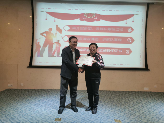 會議伊始,讀書社社長雷榕芳同學向大家匯報了講解隊的籌備過程,中國船政文化博物館、林則徐紀念館、馬江海戰(zhàn)紀念館為我校校外思政教育實踐基地,依托三館分別成立了三支講解隊;隨后三館講解隊大隊長林靈同學為大家宣讀了三館講解隊的章程,詳細介紹了講解隊的基本制度、組織制度、會議制度、學習制度、考勤制度及獎懲制度。隨后,團委書記黃曦老師分別為三館講解隊的成員頒發(fā)了聘任證書。