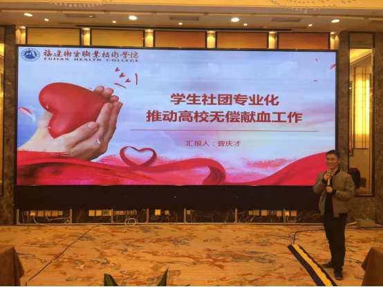 校團(tuán)委委員、醫(yī)學(xué)技術(shù)系團(tuán)總支曾慶才老師做我校獻(xiàn)血工作的匯報