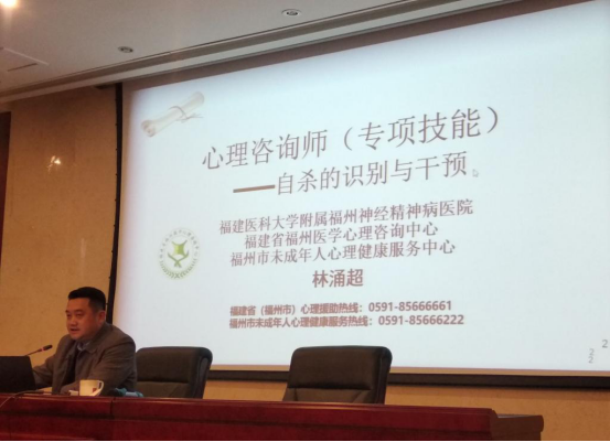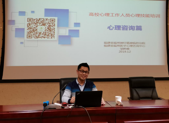 本次系列培訓(xùn)聘請的專家是福州市神經(jīng)病防治院醫(yī)學(xué)心理咨詢中心主任、福州市未成年人心理健康服務(wù)中心主任、福建醫(yī)科大學(xué)應(yīng)用心理學(xué)系兼職副教授、中國心身醫(yī)學(xué)學(xué)院講師團專家、副主任醫(yī)師林涌超,還有福州市神經(jīng)精神病防治院、福建省福州醫(yī)學(xué)心理咨詢中心教學(xué)秘書、國家二級心理咨詢師、主治醫(yī)師、中級心理治療師鄒曄峰。系列培訓(xùn)的對象包括心理健康教育中心成員、各系心理輔導(dǎo)員、專職輔導(dǎo)員、19級兼職輔導(dǎo)員以及各班心理委員。