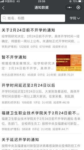 大數(shù)據(jù)提高了我院學生工作部門通訊和信息報送能力,更好地為學生的健康安全保駕護航。