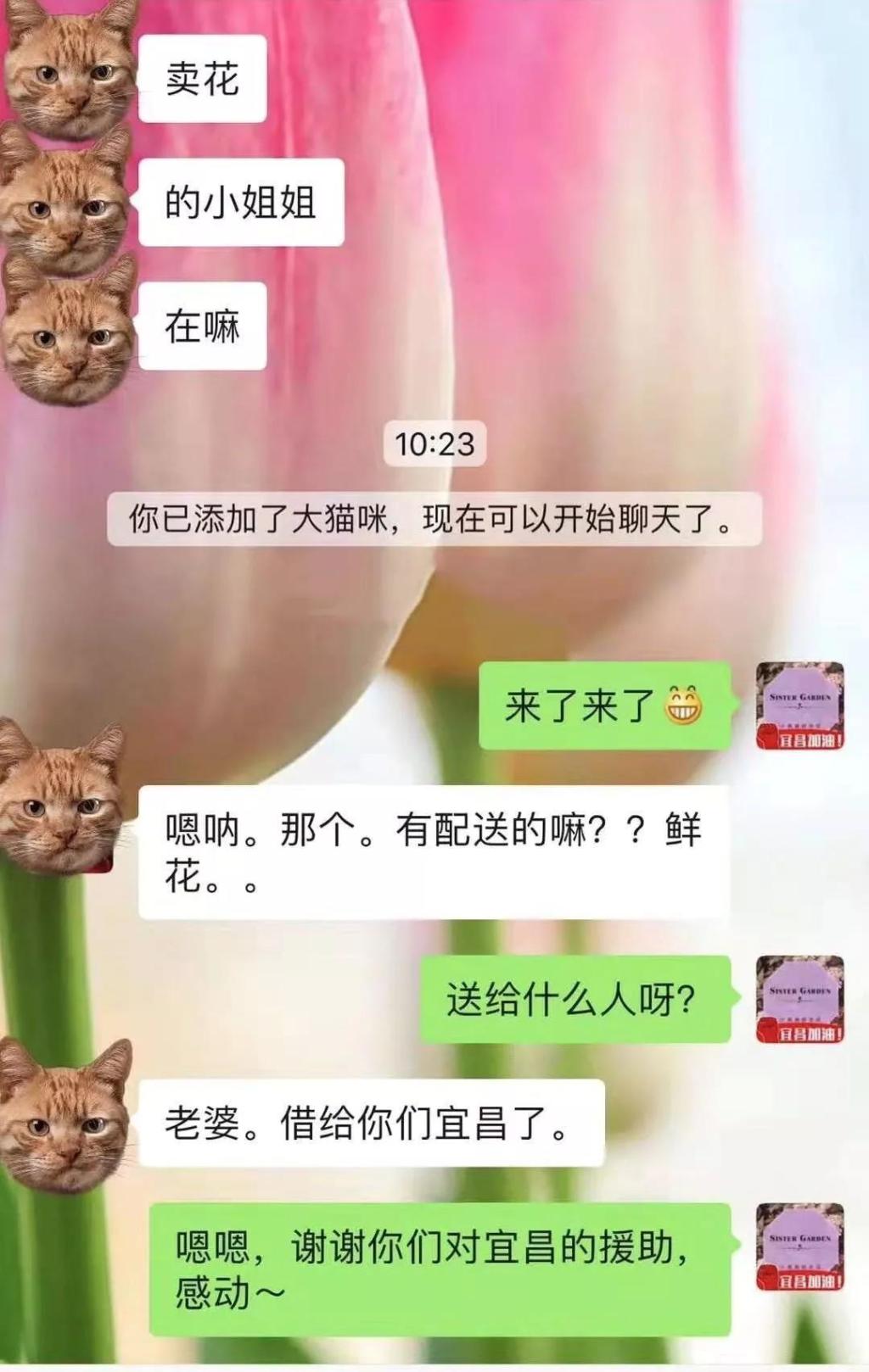而在這前一天,宜昌花店老板馬袁媛收到了一份來自千里之外的訂單,對方叫“大貓咪”,要買花送給老婆。