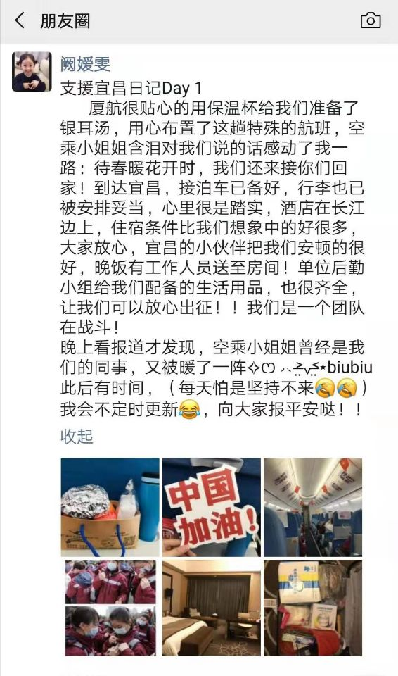 到達宜昌后,她在朋友圈寫下了自己的“支援宜昌日記”,雖是去援助,但言語間充滿了感恩之情。
