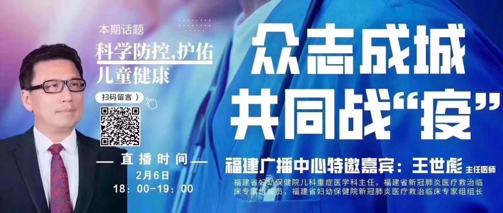 前不久,王世彪同志作為福建廣播中心特邀嘉賓,在《眾志成城,共同戰(zhàn)役》欄目做“科學(xué)防疫,護(hù)佑兒童健康”專題直播,指導(dǎo)我省兒童防疫工作。