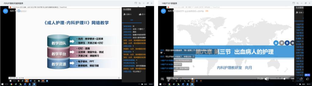 本學(xué)期內(nèi)科護(hù)理教研室一共承擔(dān)了3門課程,經(jīng)過討論和分工后,由向月和另一位年輕教師負(fù)責(zé)《內(nèi)科護(hù)理學(xué)》的網(wǎng)絡(luò)教學(xué)的相關(guān)工作。教學(xué)任務(wù)確定后,兩位老師就緊鑼密鼓地開始制定這門課程的網(wǎng)絡(luò)教學(xué)計(jì)劃,這門課程本學(xué)期一共有24個班級需要授課,她倆年輕,經(jīng)驗(yàn)不足,更何況是面對全新的授課方式。挑戰(zhàn)還是不小的。兩位老師首先進(jìn)行了集體備課,并邀請洪霞老師指導(dǎo),對網(wǎng)絡(luò)教學(xué)內(nèi)容進(jìn)行梳理和分工,并制定了詳細(xì)的教學(xué)方案和教學(xué)活動安排表。在經(jīng)過無數(shù)次的討論,無數(shù)次的試播后,在教研室同事的幫助下,她們終于順利地開始了《內(nèi)科護(hù)理學(xué)》的網(wǎng)絡(luò)授課,并收獲了不錯的教學(xué)效果。