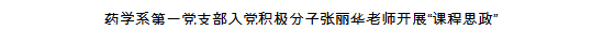 怎樣在專業(yè)課程中自然地融入思政元素,讓學(xué)生欣然接受,達(dá)到德技兼育的效果?作為省級(jí)創(chuàng)先爭(zhēng)優(yōu)樣板支部的藥學(xué)系第一黨支部,在“雙帶頭人”的支部書記何舒瀾老師的帶領(lǐng)下,從平臺(tái)的選擇到教學(xué)程序的安排,從課程內(nèi)容的講授到思政元素的融入,支部的黨員教師們著實(shí)花了不小的心思,事先做足了功課。
