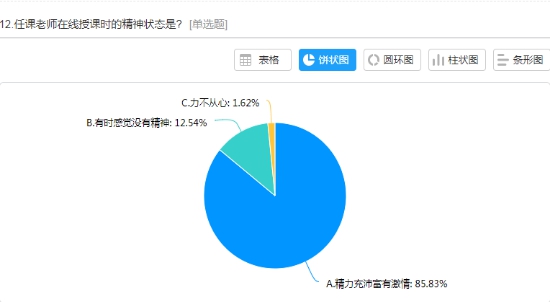 85.83%老師在線授課時(shí)的精力充沛富有激情,教學(xué)效果顯著。