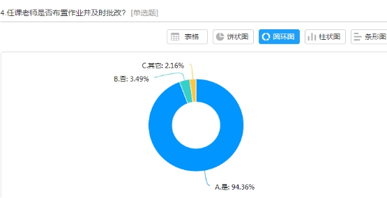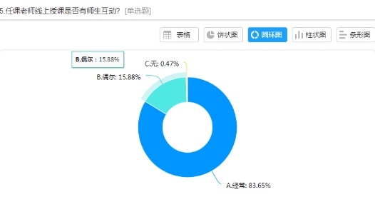 94.36%老師布置作業(yè)并及時(shí)批改,83.65%老師線上授課經(jīng)常有師生互動(dòng)。