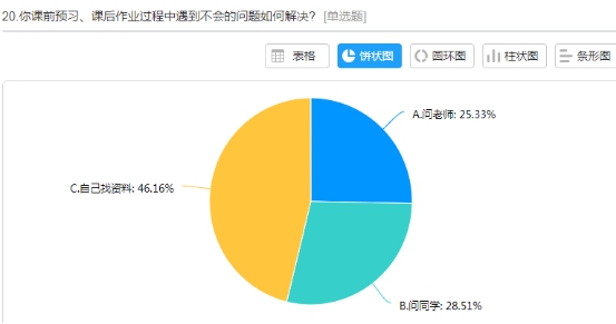 94.55%的學(xué)生希望老師根據(jù)學(xué)生的不同情況給予針對性的教學(xué)和輔導(dǎo),同時(shí)同學(xué)們也提出自己學(xué)習(xí)的最大困難,在課前預(yù)習(xí)、課后作業(yè)過程中遇到不會(huì)的問題時(shí)會(huì)通過問老師、問同學(xué)、自己查找資料等多種方式加以解決。