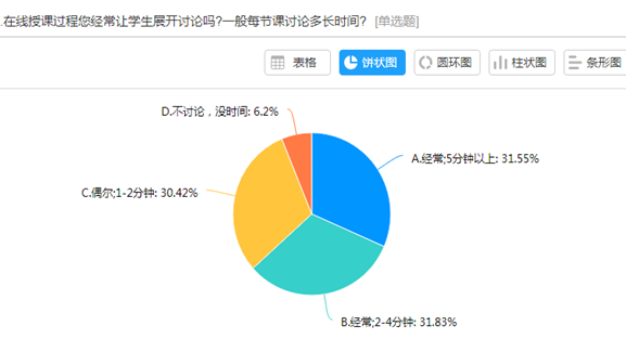 93.8%的老師在線授課過(guò)程每節(jié)課均開展課堂討論活動(dòng),多提供學(xué)生自主思考機(jī)會(huì)。