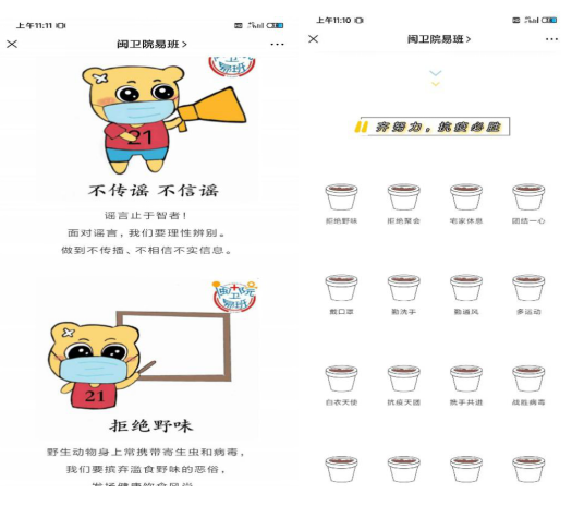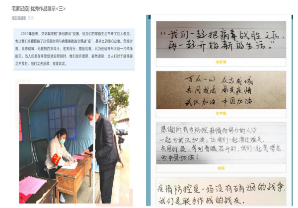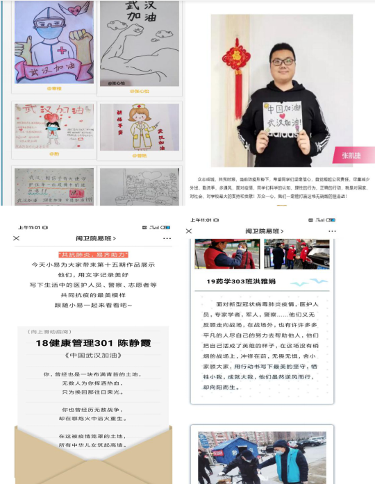 編制學(xué)生思想“防護(hù)服”。為落實學(xué)院疫情防控工作要求,扎實做好疫情防控期間學(xué)生的教育管理服務(wù)工作,易班發(fā)展中心充分利用新媒體矩陣,發(fā)揮網(wǎng)絡(luò)平臺優(yōu)勢,主動發(fā)聲、正面引導(dǎo),以科學(xué)防疫為主題編織“防疫信息網(wǎng)”,以愛國主義教育為主題編織“防疫思政網(wǎng)。通過策劃組織防控疫情系列活動,鼓勵廣大師生在線制作網(wǎng)絡(luò)文化作品。開展“為武漢手寫祝福”活動,號召廣大學(xué)子用手中的筆寫下祝福,致敬抗疫一線,活動累計收到作品兩百多份;號召在校輔導(dǎo)員老師為分布在全國各地的學(xué)生送去暖心問候和關(guān)愛,短短兩小時內(nèi)就收到了二十幾個老師精心準(zhǔn)備的作品,將收集到的作品以《@衛(wèi)院學(xué)子,易同戰(zhàn)“疫”,輔導(dǎo)員有話對你說!》發(fā)布在公眾號上,為遠(yuǎn)方的學(xué)生送去冬日里的溫暖;在“易班”APP發(fā)起“防疫知識競賽”活動,開展“宅家記疫”主題征文和“共抗肺炎,易齊助力”活動,兩個活動共計收到了近千份,同學(xué)們用文字和短視頻記錄下了居家抗疫中的所做所見所感;還以學(xué)生喜聞樂見的形式設(shè)計制作“閩衛(wèi)院防疫表情包”和“閩衛(wèi)院專屬小瓶子”等作品,在學(xué)生朋友圈廣泛傳播。