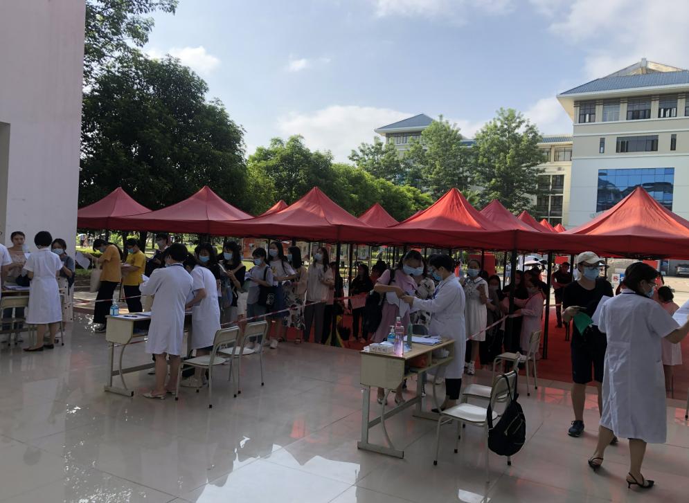 ▲考場(chǎng)人性化布置,設(shè)立帳篷、制作考場(chǎng)引導(dǎo)牌、入場(chǎng)檢測(cè)流程圖,安排專(zhuān)門(mén)工作人員負(fù)責(zé)引導(dǎo)及咨詢(xún)