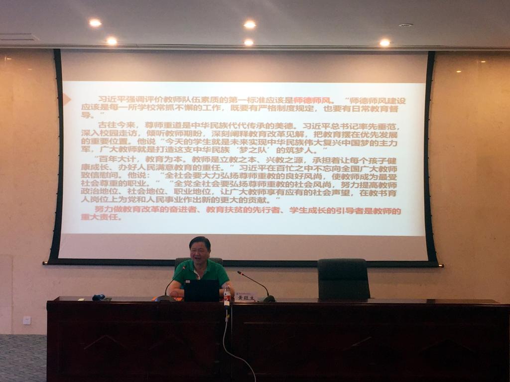 10月6日下午,黃旺生教授以《弘揚(yáng)高尚師德,做一名人民滿意的高校教師》為題,通過活潑生動(dòng)、睿智感人的教育事跡,娓娓道出了一名老教師對(duì)教師職業(yè)和師德修養(yǎng)的理解與感悟,分享了自身從教數(shù)十年的喜怒哀樂和酸甜苦辣,闡明了師德的重要性和基本要求,并勉勵(lì)青年教師要認(rèn)真履行教書育人的神圣使命。