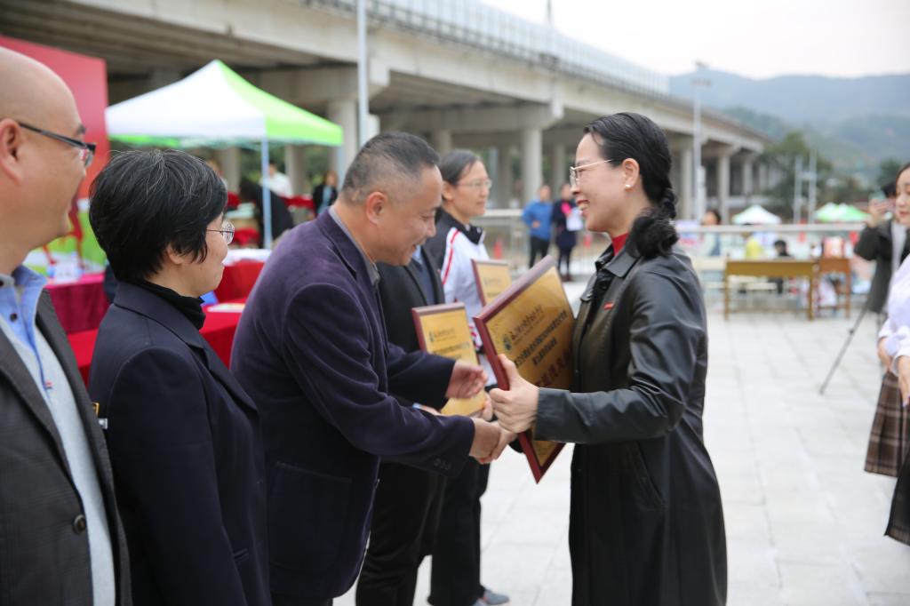 校領(lǐng)導(dǎo)依次為獲獎單位和個人頒獎并合影留念。