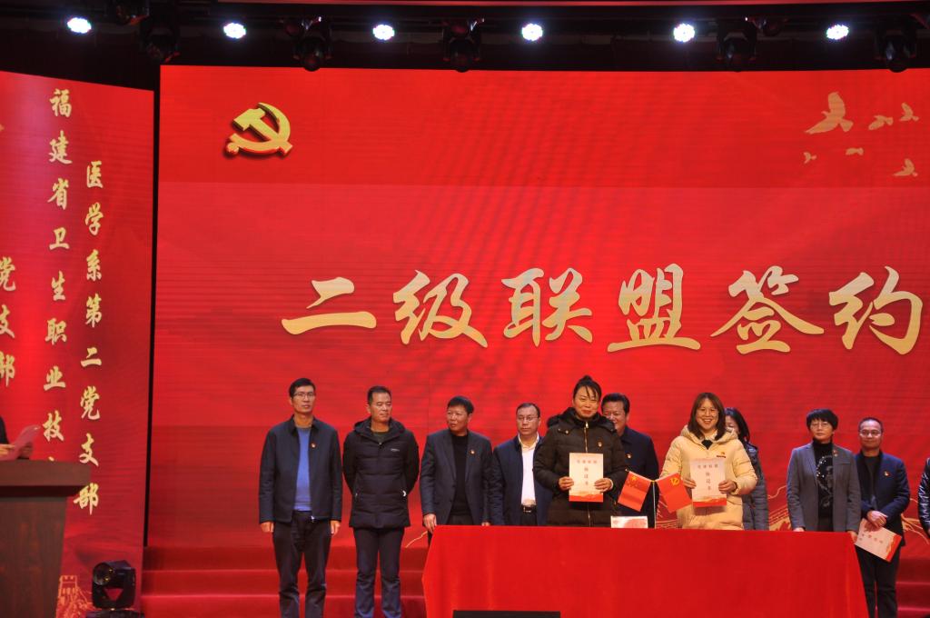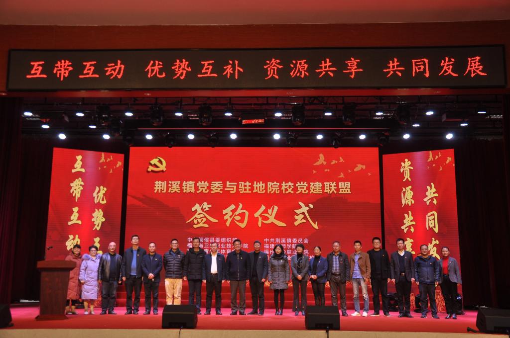 簽約儀式上,我校與荊溪鎮(zhèn)黨委簽訂一級黨建聯(lián)盟協(xié)議,醫(yī)學系第一、二黨支部分別與閩侯縣荊溪鎮(zhèn)衛(wèi)生院黨支部、亞鷹建筑科技集團黨支部簽訂二級黨建聯(lián)盟協(xié)議。