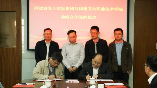 3月27日下午,福建衛(wèi)生職業(yè)技術(shù)學(xué)院與福建省電子信息集團(tuán)黨建結(jié)對及戰(zhàn)略合作協(xié)議簽約儀式在省電子信息集團(tuán)17樓視頻會議室舉行。省衛(wèi)健委規(guī)劃信息處主任科員劉文明、學(xué)院黨委曾武祈書記、集團(tuán)黃舒副總經(jīng)理出席儀式并講話,學(xué)院蘇友新院長、鄭翠紅副院長,集團(tuán)規(guī)劃部胡巖潔及雙方的相關(guān)領(lǐng)導(dǎo)和部門負(fù)責(zé)人共同見證簽約時(shí)刻。