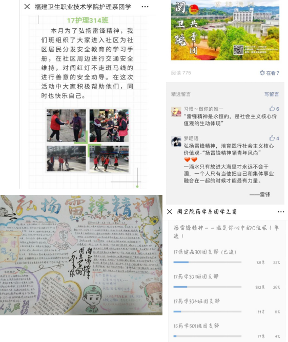 活動(dòng)月期間,各系結(jié)合專業(yè)實(shí)際,通過雷鋒精神學(xué)習(xí)報(bào)告會(huì)、主題座談會(huì)、主題觀影活動(dòng)、主題分享會(huì)、主題學(xué)習(xí)會(huì)等活動(dòng)形式,開展內(nèi)容豐富、形式多樣、富有實(shí)效的學(xué)雷鋒團(tuán)日活動(dòng)共136次,覆蓋134個(gè)團(tuán)支部;各系、各社團(tuán)在校園內(nèi)外積極宣傳志愿服務(wù)精神,結(jié)合“拗九節(jié)”、“植樹節(jié)”、“世界結(jié)核病防治日”等時(shí)間節(jié)點(diǎn)開展“學(xué)雷鋒,助我行”主題志愿服務(wù)70余場(chǎng),參與志愿服務(wù)的師生數(shù)共計(jì)4000余人次;通過微信公眾平臺(tái)、易班等網(wǎng)絡(luò)平臺(tái)開展“曬一曬我們的志愿生活”、“弘揚(yáng)雷鋒精神”手抄報(bào)、“最美志愿者”、“最美志愿團(tuán)隊(duì)”評(píng)比等網(wǎng)上主題活動(dòng)6場(chǎng)。